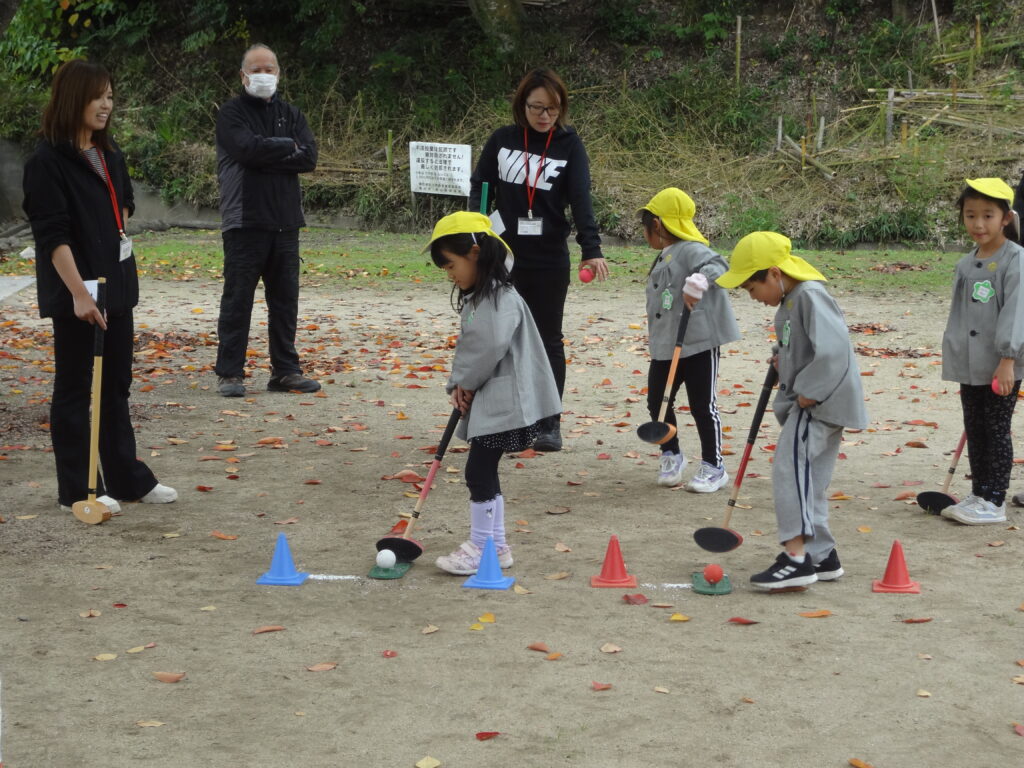 ◇11月13日(木)青葉台第2公園にて、福山あゆみこども園の園児のみなさんと、グラウンドゴルフ交流会を開催しました。